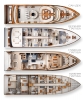 Верхняя палуба: – 5 кают для гостей – рулевая рубка – каюта капитана – кабинет спа-процедур – две открытые палубы для отдыха с диванами и столами