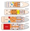 Сан-дек На верхней палубе находится полузатенённый сан-дек с барной стойкой, столами и диванами. На второй верхней палубе — открытый сан-дек с диванами, лежаками и ванной-джакузи.